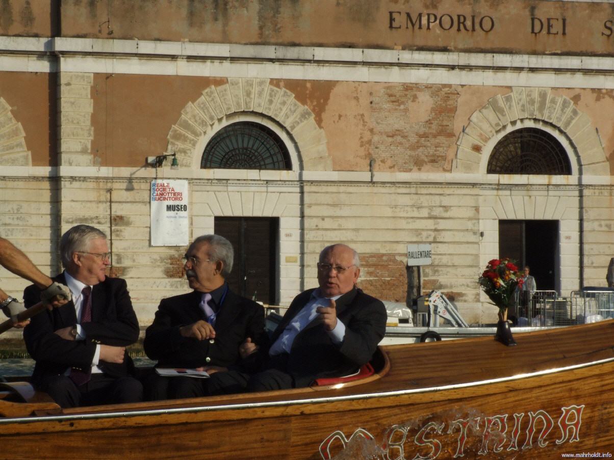 ...nein, eigentlich müßte man sagen: la Serenissima e il Presidente... Es ist im Oktober 2008, daß sich eine bemerkenswerte Einladung aus den Höhen der Geschäftsleitung hinunter verirrt zum Redakteur JM. Na ja, irgendwie klappte es bei den leitenden Kollegen nicht, aber man wollte diesen Termin auch nicht unbesetzt lassen. Immerhin hatten das "World Political Forum" (ins Leben gerufen von Michail Gorbatschow) und der "Club of Rome" nach Venedig eingeladen, um mit führenden Medienvertretern aus der ganzen Welt über die Frage zu sprechen, was eben diese Medien im Rahmen der Klimadebatte für die Rettung eben dieser Welt tun können. Das ein Jahr vor der COP-15-Konferenz, also vor Kopenhagen.