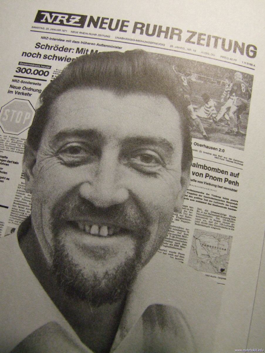 NRZ-Lokalchef in Duisburg ist Anfang der siebziger Jahre Günter Schmidt. Theodor-Wolff-Preis-Träger von 1970/71, kein Mann vieler Worte, aber dafür deutlicher. Als ich ihm mal wieder ein Manuskript auf den Schreibtisch schiebe, liest er es durch und fragt nur: "Wat soll dat?". Ich stammele irgendeine Erklärung - Inhalt unwichtig. Erst später wird mir klar: Es ist die Frage nach dem öffentlichen Interesse der Geschichte. - Noch heute frage ich mich vor jeder Story: "Wat soll dat?" - Danke, Günter Schmidt!