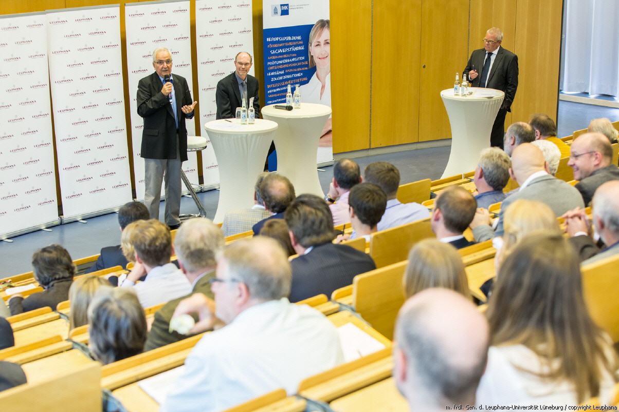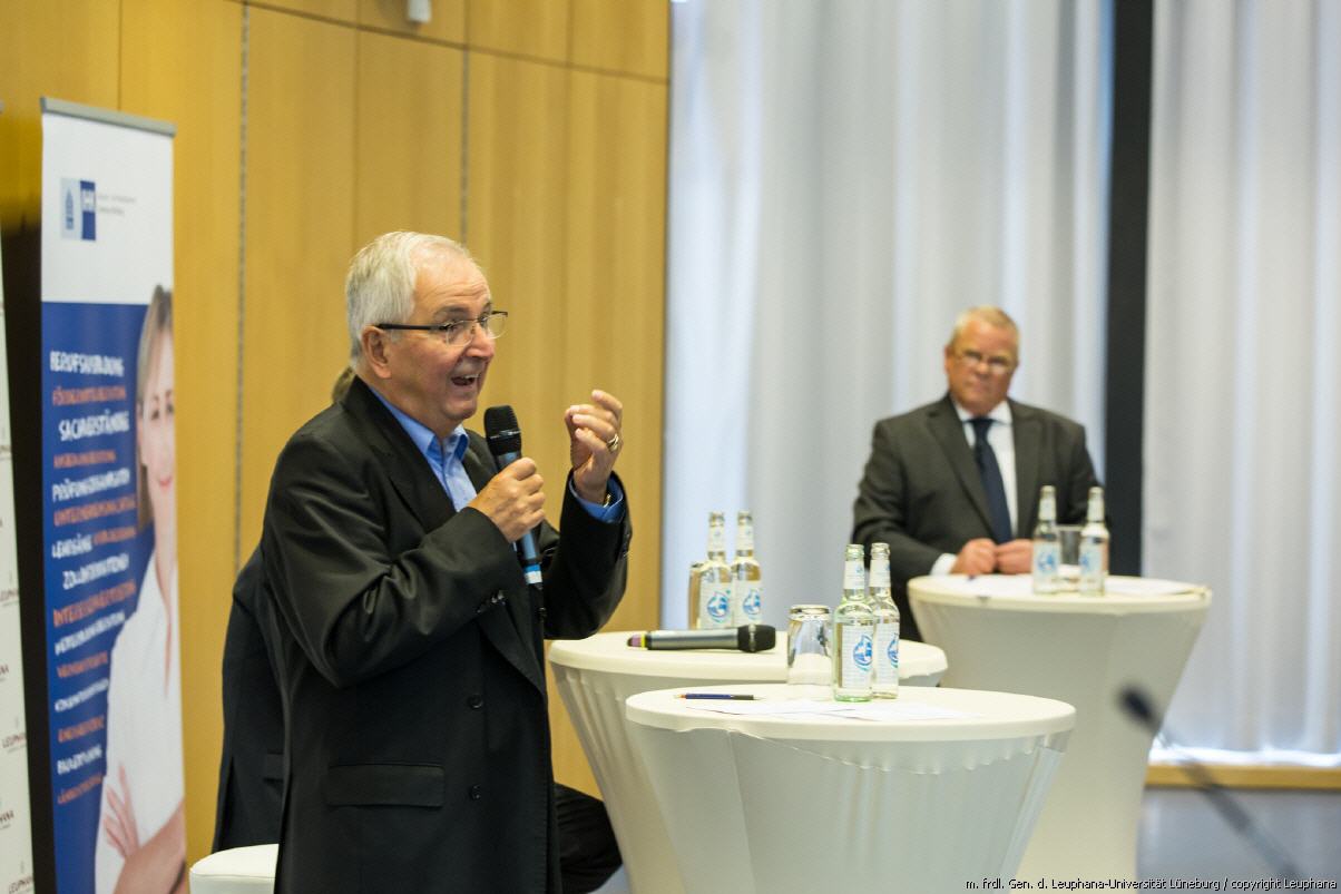 Moderation Podium mit Prof. Ludwig Bölkow und Reinhard Abraham 40 Jahre LPC