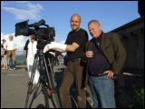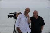 2010, am Weststrand des Darß. Im Hintergrund Moderatorin Claudia Krüger, Drehmaterial prüfend. |